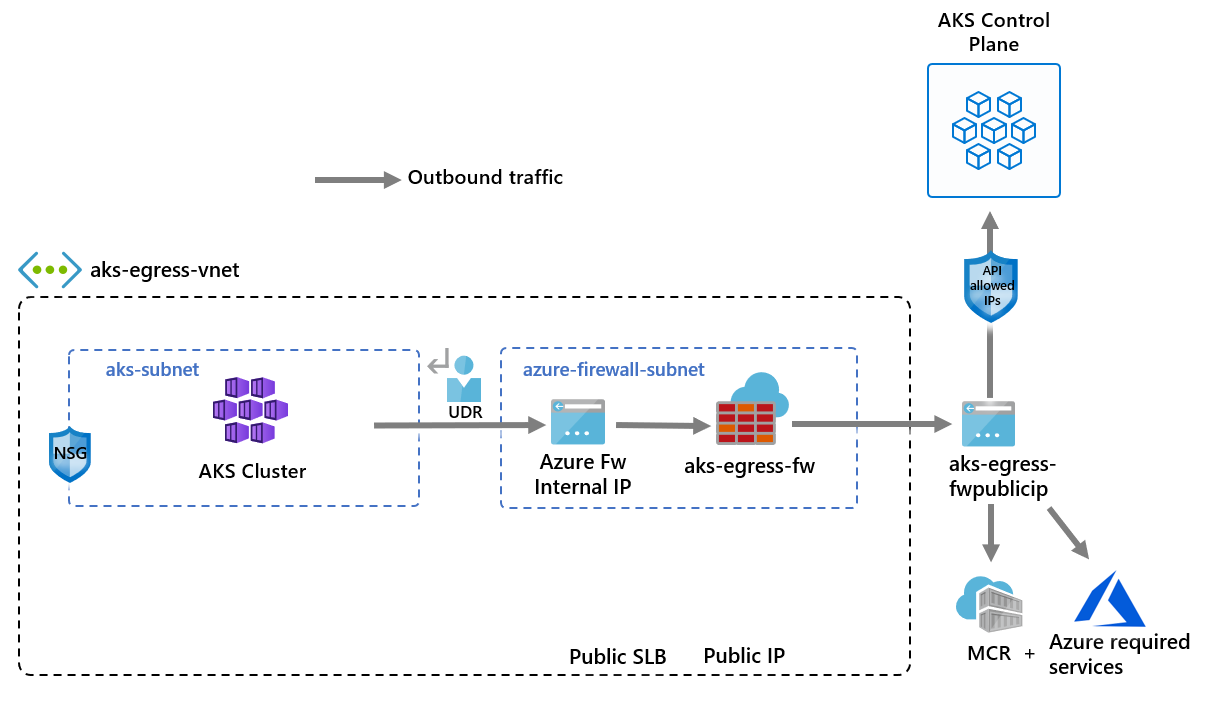 추가로 “UDR + Azure Firewall로 egress 제한”은 공식 문서에 가이드가 있고, Azure Firewall은 AKS용 AzureKubernetesService FQDN Tag로 필요한 도메인들을 관리하기 쉽게 제공합니다.